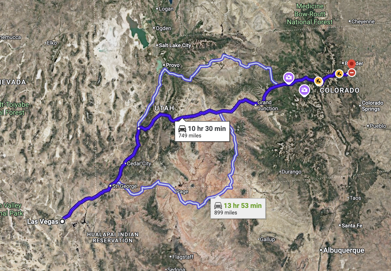 Lấy biển xong là tranh thủ đi road trip 1 phát luôn, để hết break in còn đi bảo dưỡng lần đầu. Tổng quãng đường từ Denver > Las Vegas > Denver khoảng 2500km, thời gian cả chuyến là 72 tiếng. Mà chuyến này đi 1 mình nên khá chill.